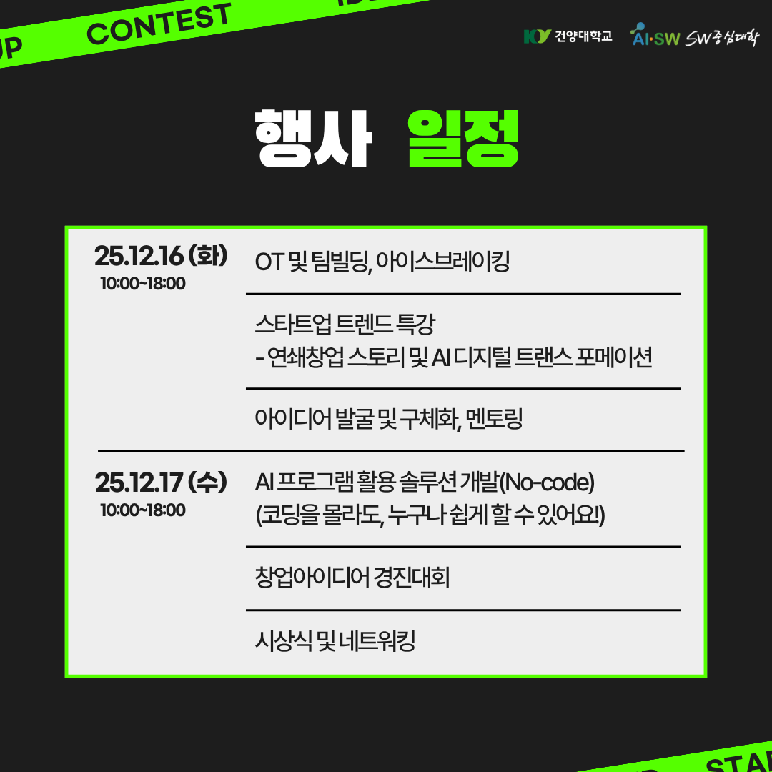 『 창업 아이디어 경진대회 안내 』글의 상세내용을 확인하는 표로 제목, 부서명, 등록일, 조회, 첨부, 내용으로 나뉘어 설명합니다.